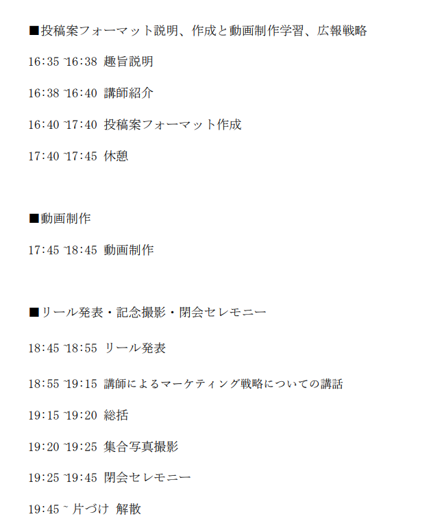 ・全参加者が1つの動画を制作します。(動画は30秒~1分とします)